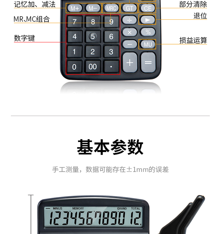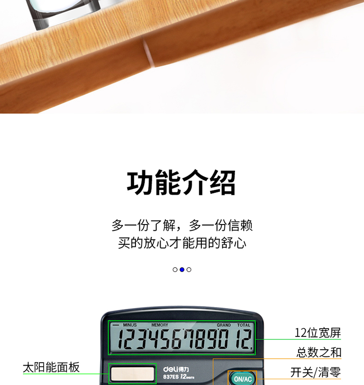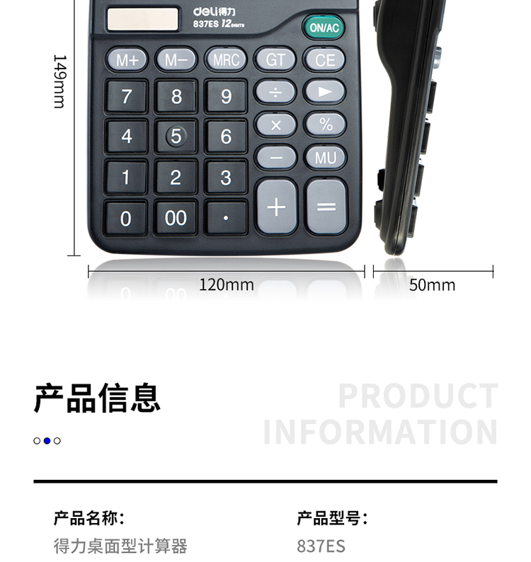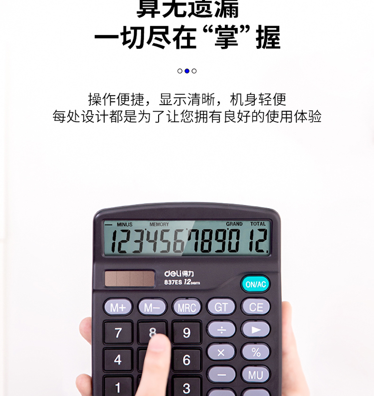 得力(deli)双电源桌面办公计算器 12位大屏幕桌面计算机 办公文具用品 837ES